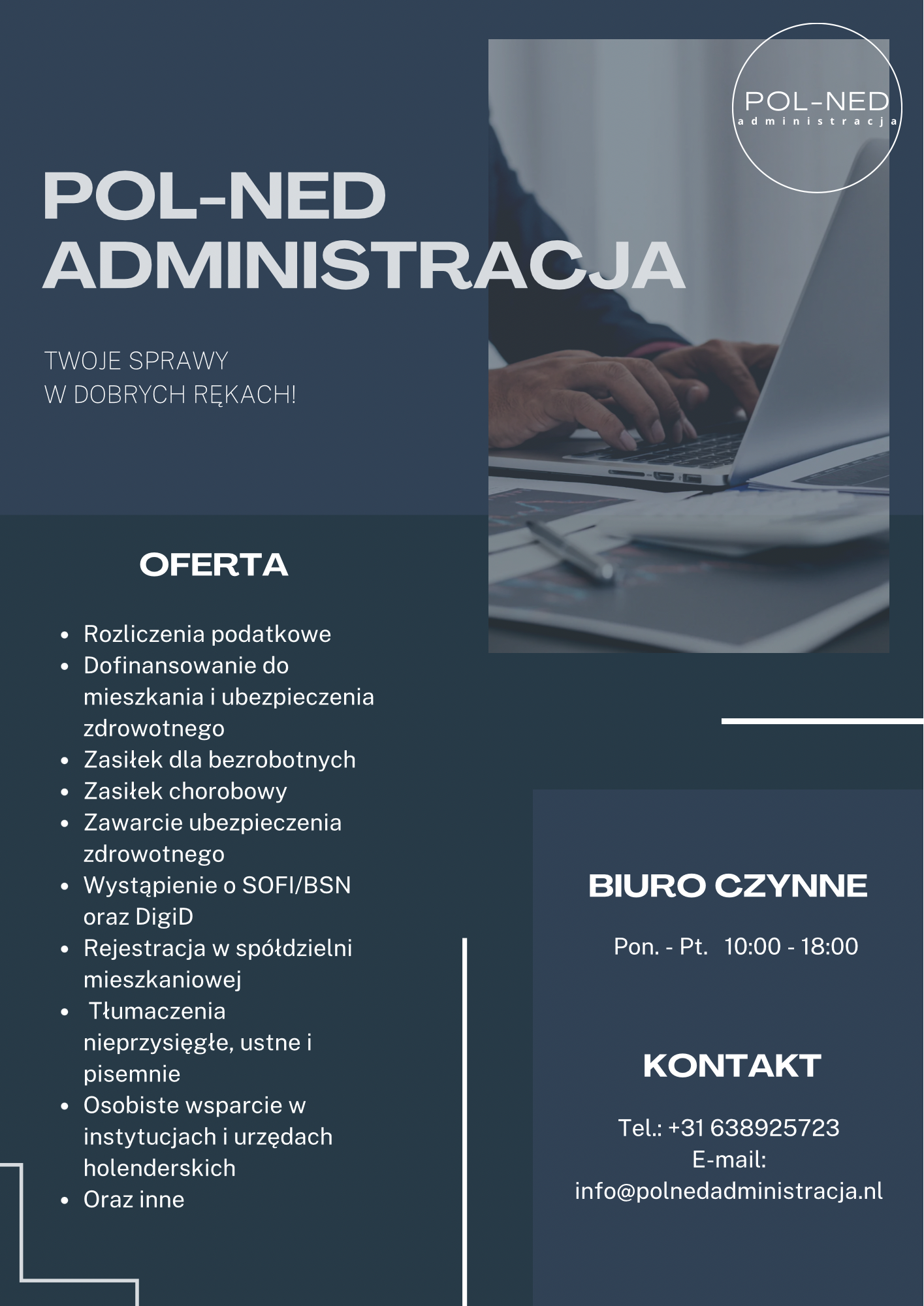 Rozliczenia podatkowe, ubezpieczenie zdrowotne, dofinansowania, zasiłki, SOFI/BSN, DigiD, rejestracja w spóldzielni mieszkaniowej, tłumaczenia, wsparcie w urzędach a także innych sprawach